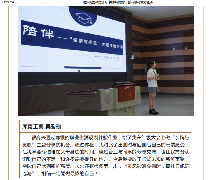 海外教育学院举办“亲情与感恩”主题体验分享交流会