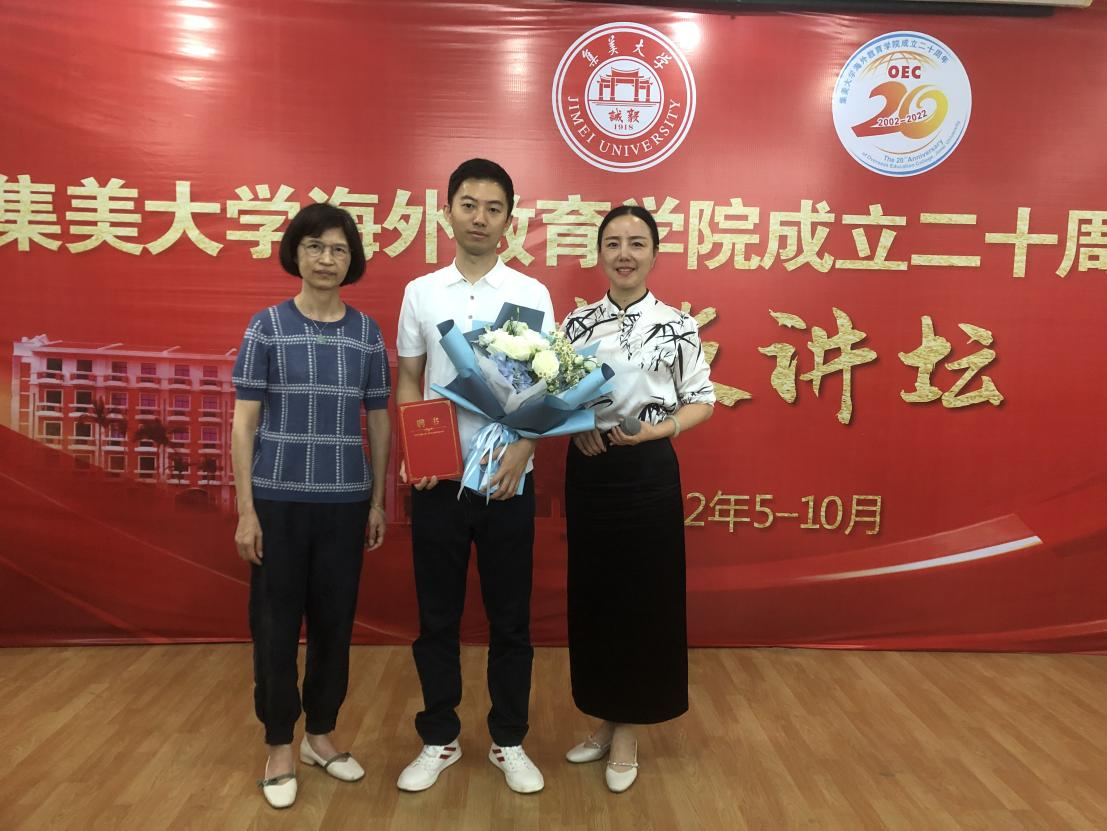 集美大学海外教育学院生涯体验教育中心老师与库克中国项目2012届校友赖世伟合影
