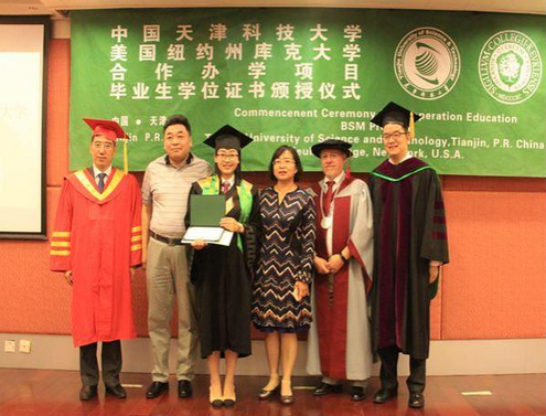 With the beginning of Chinese and American national anthems, the graduation ceremony started. Dr. Li Zhanyong , Vice President of Tianjin University of Science and Technology, delivered a speech with affection, giving thanks to those who made efforts to the Sino-U.S. academic cooperation program and granted his approval of the marvelous academic achievements, employment, and further study of Keuka China Programs graduates and expressed his high expectations to all graduates: to continue to carry forward the motto of Tianjin University of Science and Technology and be an excellent people.